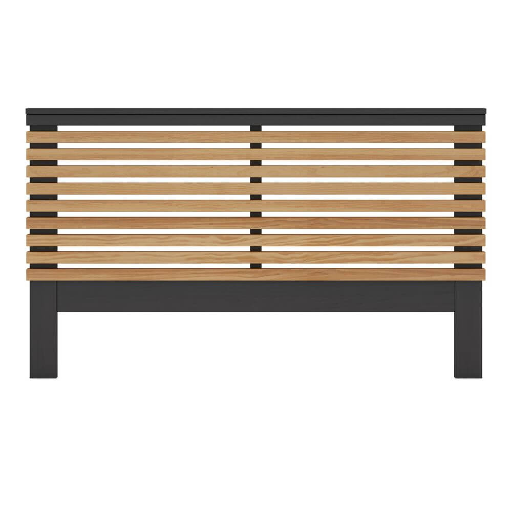 Composición de cabecero de diseño para cama de 135-140 cm y dos mesillas de noche de dos cajones con patas de roble. Fabricado con material de pino de alta calidad.