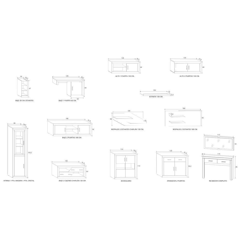 - Alto 2 puertas 130 cm. 46 cm x 130 cm x 27,9 cm.