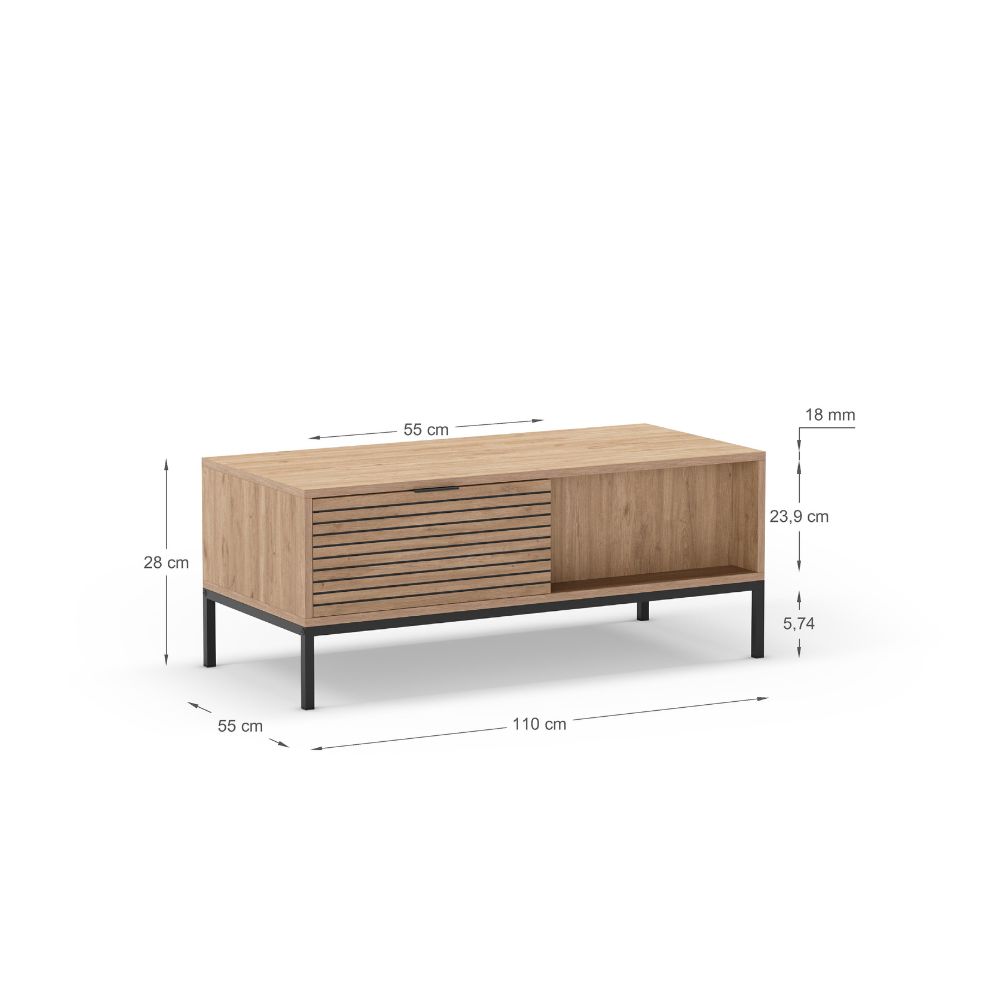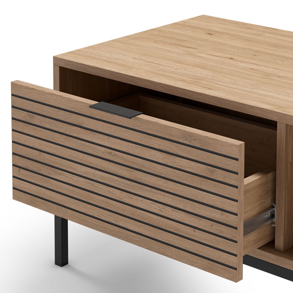 Equipada con dos cajones amplios, esta mesa ofrece espacio de almacenaje ideal para mantener el salón ordenado: mandos, revistas, accesorios y objetos del día a día quedarán siempre a mano pero fuera de la vista.