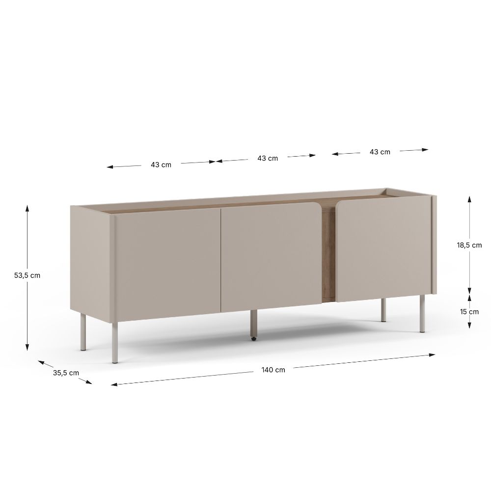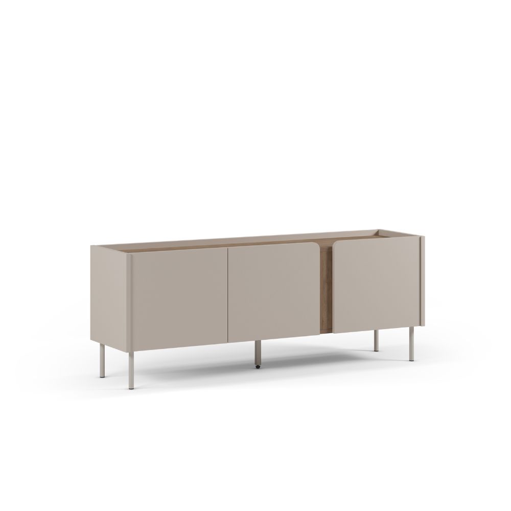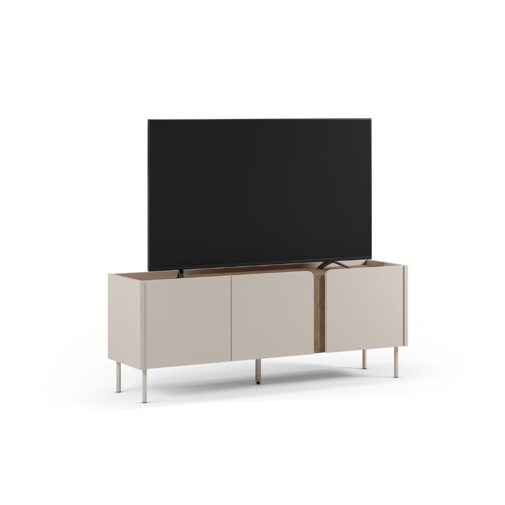Con 140 cm de largo, el modelo Lucy es perfecto para televisores medianos y grandes, adaptándose a distintos tamaños de salón sin ocupar demasiado espacio. Además, sus patas metálicas elevadas facilitan la limpieza y aportan un aire ligero y moderno.