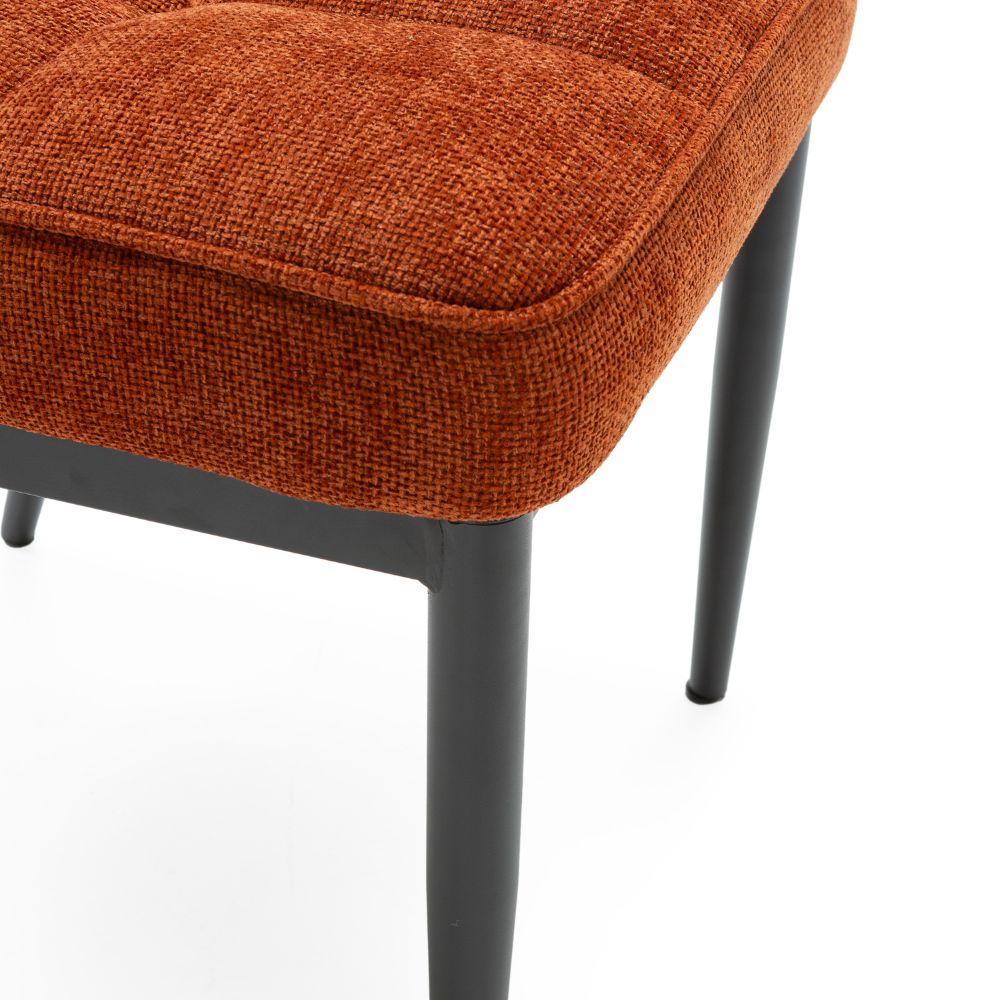 Gracias a su respaldo alto acolchado y su asiento ergonómico, esta silla tapizada ofrece una experiencia cómoda incluso en usos prolongados. El tono terracota, tendencia en decoración, aporta calidez y personalidad a cualquier ambiente.
