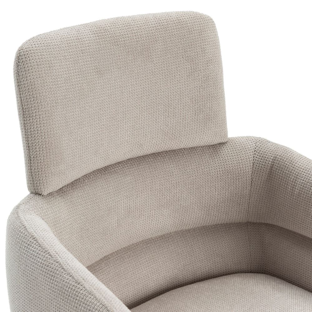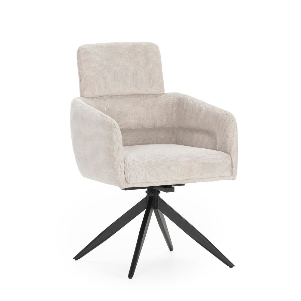 Su tapizado en suave tela aterciopelada color gris clara, en combinación con una base metálica negra, ofrece un contraste elegante y sobrio que realza cualquier decoración. El sistema giratorio aporta dinamismo y comodidad, permitiendo libertad de movimiento sin desplazar la silla. Su estructura robusta y su acolchado de alta densidad garantizan confort incluso en usos prolongados.