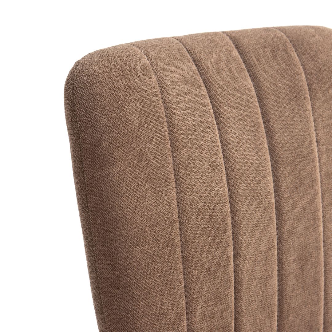 Fabricada con asiento y respaldo tapizados en tela de alta calidad y una sólida estructura de patas metálicas, esta silla ofrece una excelente estabilidad y durabilidad para el uso diario. El respaldo alto proporciona un apoyo ergonómico que mejora la postura y el confort incluso en usos prolongados.