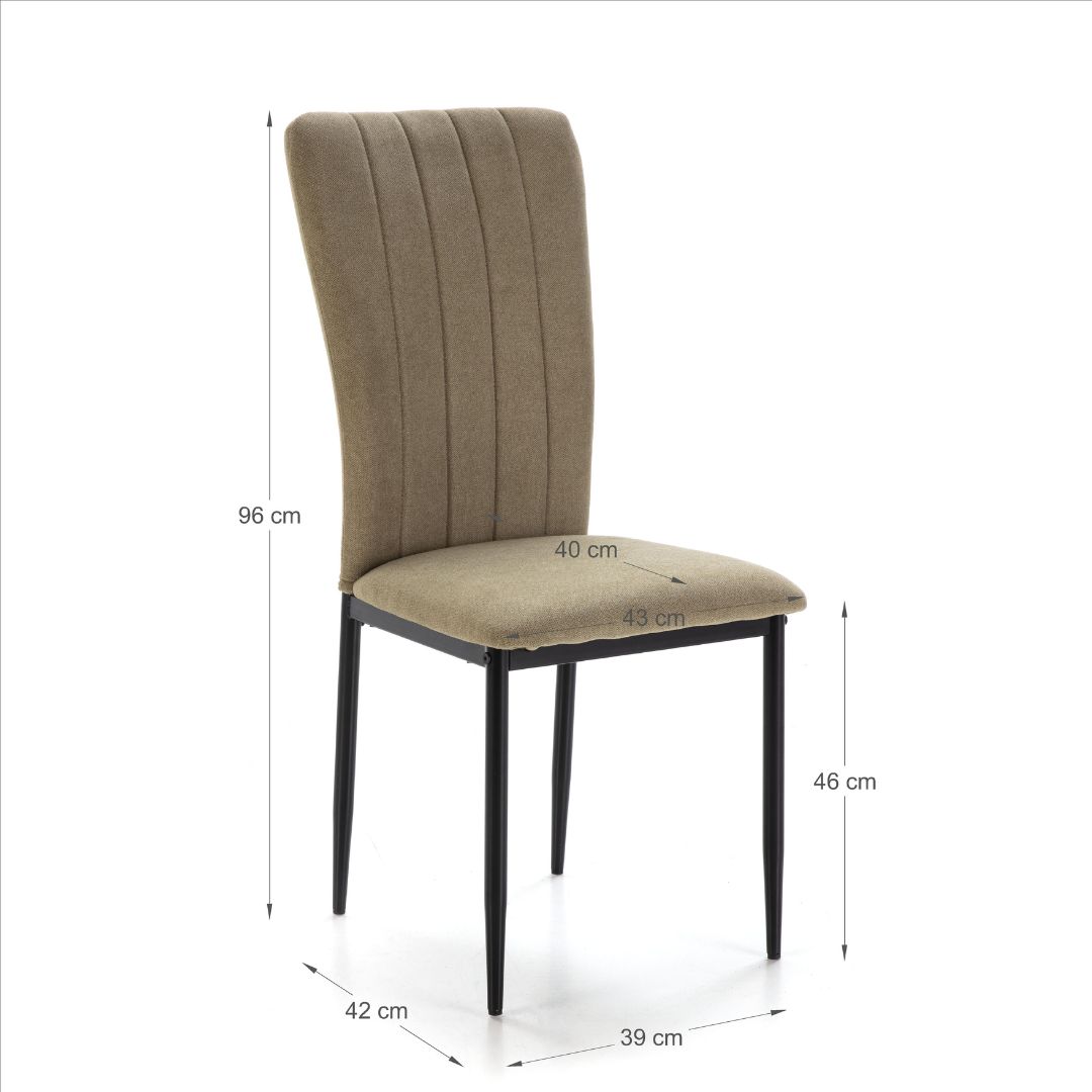 Fabricada con asiento y respaldo tapizados en tela de alta calidad y una sólida estructura de patas metálicas, esta silla ofrece una excelente estabilidad y durabilidad para el uso diario. El respaldo alto proporciona un apoyo ergonómico que mejora la postura y el confort incluso en usos prolongados.
