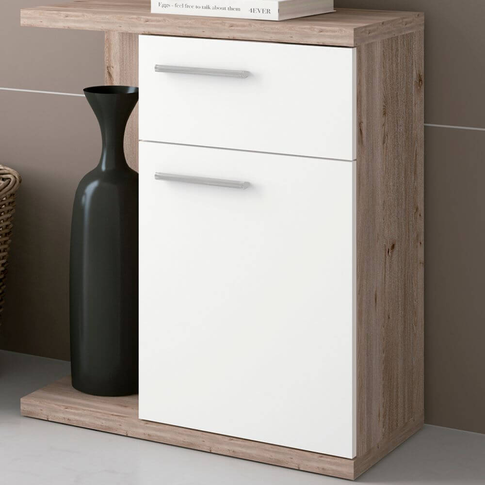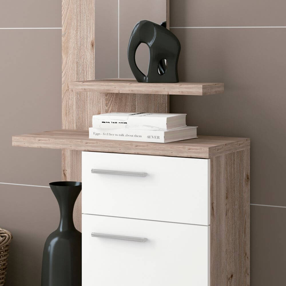 Este moderno mueble acabado en color roble, es ideal para todo tipo de entradas o recibidores gracias a sus compactas dimensiones ocupando el mínimo espacio.